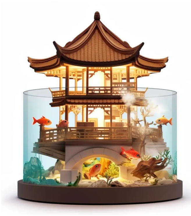 如果是很大的鱼缸,就不要选择奇形怪状的了。至于那种大一点的鱼缸,下面所带的类似柜子的支撑,所选颜色应该以暗色或者是中性色为主,不要过艳,不要用红色即可。