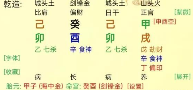 此造的寿元星是酉金,原命局二卯夹冲,命宫穿之身宫绝之,是故断定寿数不长。丁卯运三卯冲一酉注定寿限已到,庚辰年合制酉金(受冲克之后的字遇合为合制,正如人病入膏肓时不能补,补则丧命。)断定2000年死亡,此人在2000年阴历二月因车祸死亡。
