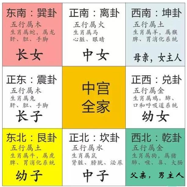 4、西南缺角损母亲,西北缺角损严父,东北缺角损小口。