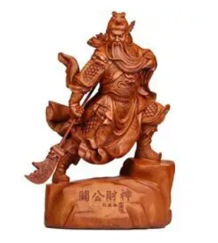 (2)关公:关公原名关羽,字云长,是三国时代的名将。形象威武,他不但忠勇感人,而且能招财进宝,护财避邪。有一点必须注意,摆放文财神以及武财神的方向有异,必须分清楚!满面祥和的文财神,不论是财帛星君,或是福禄寿三星均应向着自己屋内,而不应向着屋外。否则便会向屋外送财!至于威风凛凛的武财神则应面向屋外,或是面向大门,这样一方面既可招财入屋,同时又可镇守门户,不让外邪入侵。