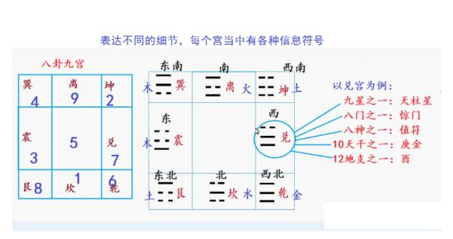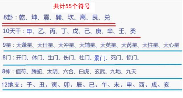 6:奇门遁甲的信息符号归纳起来共计55个符号,而且符号都是从八个卦里面表达细节分出来的,所以很多符号表达的意思都有共通之处。