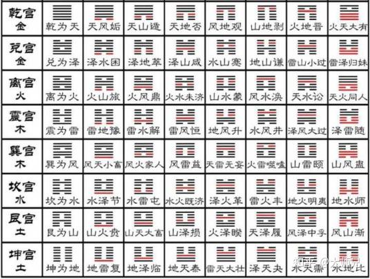 如此类推,八卦的记忆相对简单,这里主要介绍64卦的记忆法则。