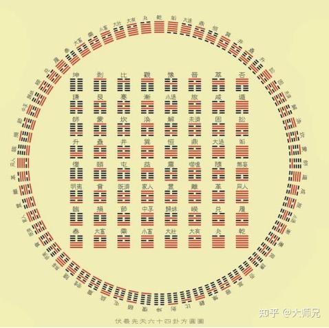 相比于八卦,六十四卦的记忆就复杂多了,64个卦,每个卦六画(八卦是三画卦),阴(— —)、阳(—)来来回回切换排列而形成的64个符号。