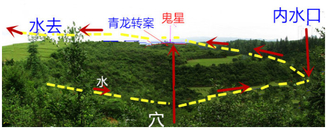 补义:大凡穴前,未有元辰不去之理。只要有沙脚交结,左右拦截,使元辰水屈曲之玄则吉。立穴紧要,先须审此。若穴前有横沙兜拦元辰,则结穴眞。缘督《琐诀》云:“十个单提九个眞,十个仙宫九个贵”《赋》云: “外耸千重,不若眠弓一案。”皆谓穴前有横沙拦收元辰,使气脉融聚,或穴下有平田囊注之水,皆能关聚生气。卜氏云“穴前忌见深坑”,又曰“穴下切忌漏槽”。皆谓其不能收固元辰矣。今人动言“入山寻水口”,殊不知水口是城门,众家所共。先须要自家房屋紧固。如人住室,财宝俱在房奥之中,先须要中门紧密,再要一门、二门、大门,然后纔要城门。故单提、仙宫之穴,皆切近于穴有关拦,如房奥之有中门紧密,而能藏珍宝也。