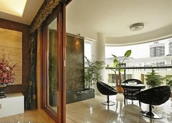 装修阳台不必太过张扬,清爽素洁为好,要保持整洁,不可堆放杂物。阳台侧墙面、地面可以做一些装饰美化,放一些清新宜人的有韵味的装饰品,也可以在阳台种植花草,营造园林小空间,为家居增添自然景致,添旺财火。但如果是阳台紧靠厨房的话,便可以利用阳台的一角,建筑一个储物柜,存放一些蔬菜食品或不经常使用的物品。如供休息、餐饮使用的阳台,也可摆放少量的折叠家具。