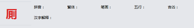 厠 繁体:厠 拼音:cè 简体笔划:11 繁体笔划:0 部首:厂 五笔输入法: