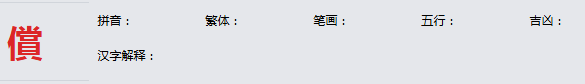 償 繁体:償 拼音:cháng 简体笔划:17 繁体笔划:0 部首:亻 五笔输入法: