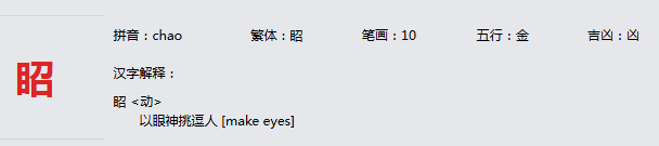 眧 拼音:chao 繁体:眧 笔画:10 五行:金 吉凶:凶