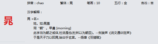 晁 拼音:chao 繁体:晁 笔画:10 五行:金 吉凶:吉