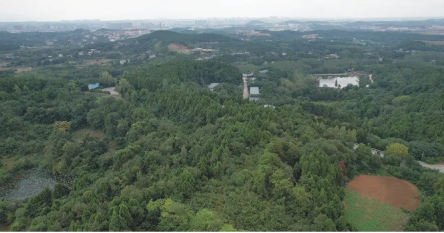 无人机拍摄看,后面的山势也是一层比一层低,远处山顶并不与之相连,再远处则为城市平原。