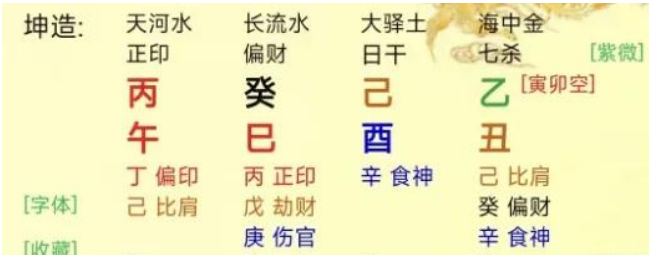 年柱丙午纳音天河水,癸巳纳音长流水,己酉纳音土,乙丑纳音金,胎元甲申纳音水。