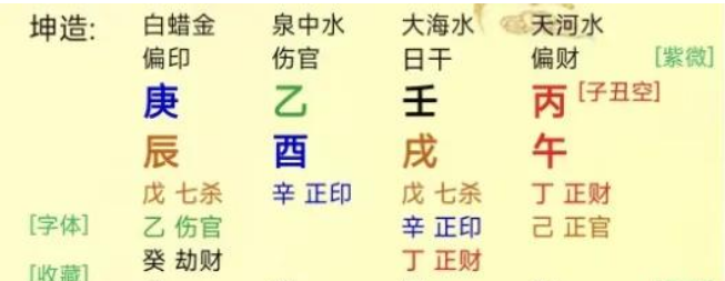 年柱庚辰纳音是白蜡金,乙酉纳音是水,壬戌纳音是水,丙午纳音是水,胎元丙子纳音是水。