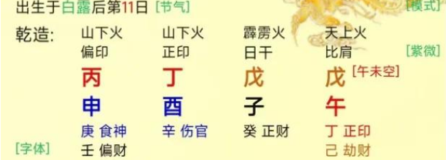 1,数个数:丙火两个,丁火两个,戊土三个。
