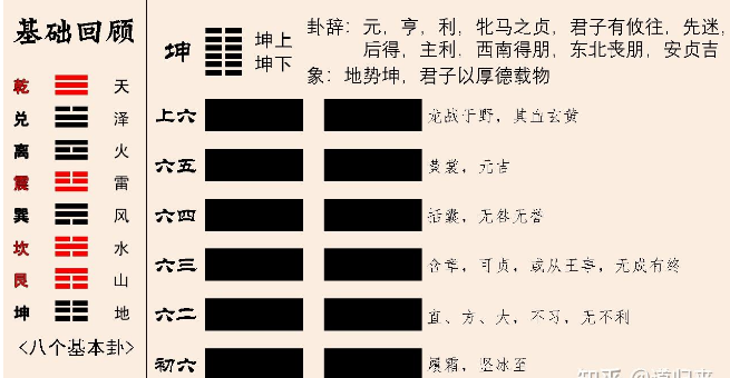 至此我们已经知道,乾坤不可分割,乾卦为天子君王,坤卦为群臣百姓。乾卦,描述了纯阳元素的发展规律,自强不息;坤卦,描述了纯阴元素的的发展规律,厚德载物。乾卦是需要坤卦来配合的,那么「坤卦」如何来配合「乾卦」的呢?大家看这下面这张图: