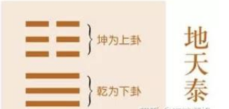 地天泰,上面的坤卦代表阴,下面的乾卦代表阳,阴的特性是向下沉的,阳的特性是向上去升的,这样阴和阳就会往对方的方向去动,就会开始交流,阴阳交流,则万物开始生长,代表着通达,通畅,泰这个字的意思就是通。