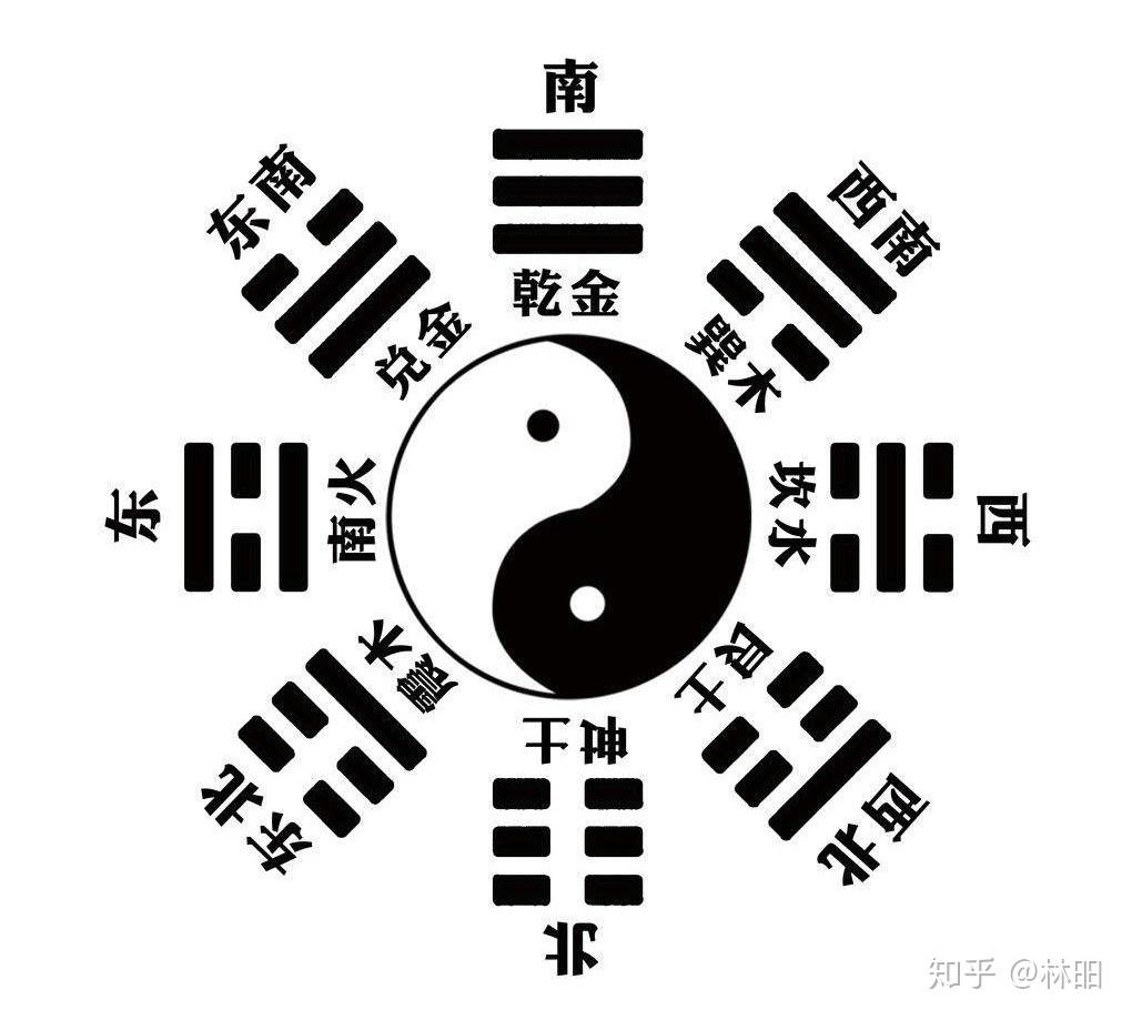 八卦的排列是有方向的,先天八卦图的排列是:乾南、坤北、离东、坎西、震东北、兑东南、巽西南、艮西北。后天八卦图的排列是:坎南、离北、东震、西兑、艮东北、巽东南、坤西南、乾西北。