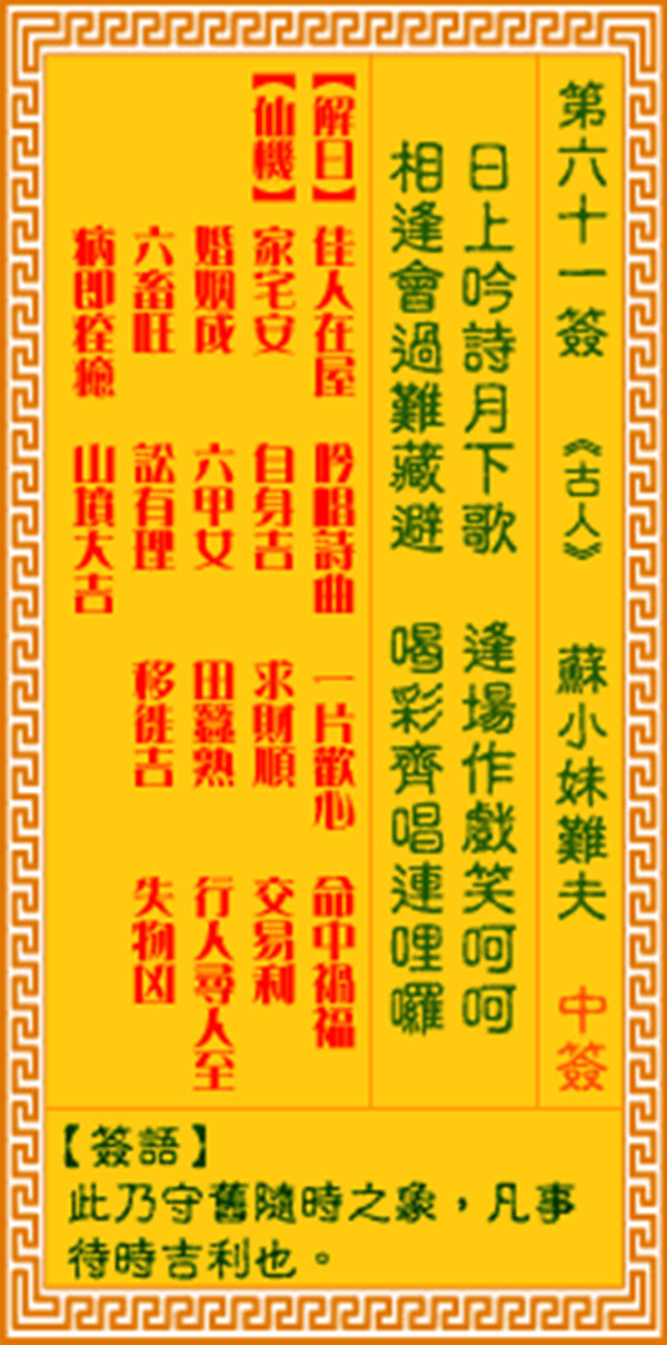 观音灵签第六十一签 【苏小妹难夫】